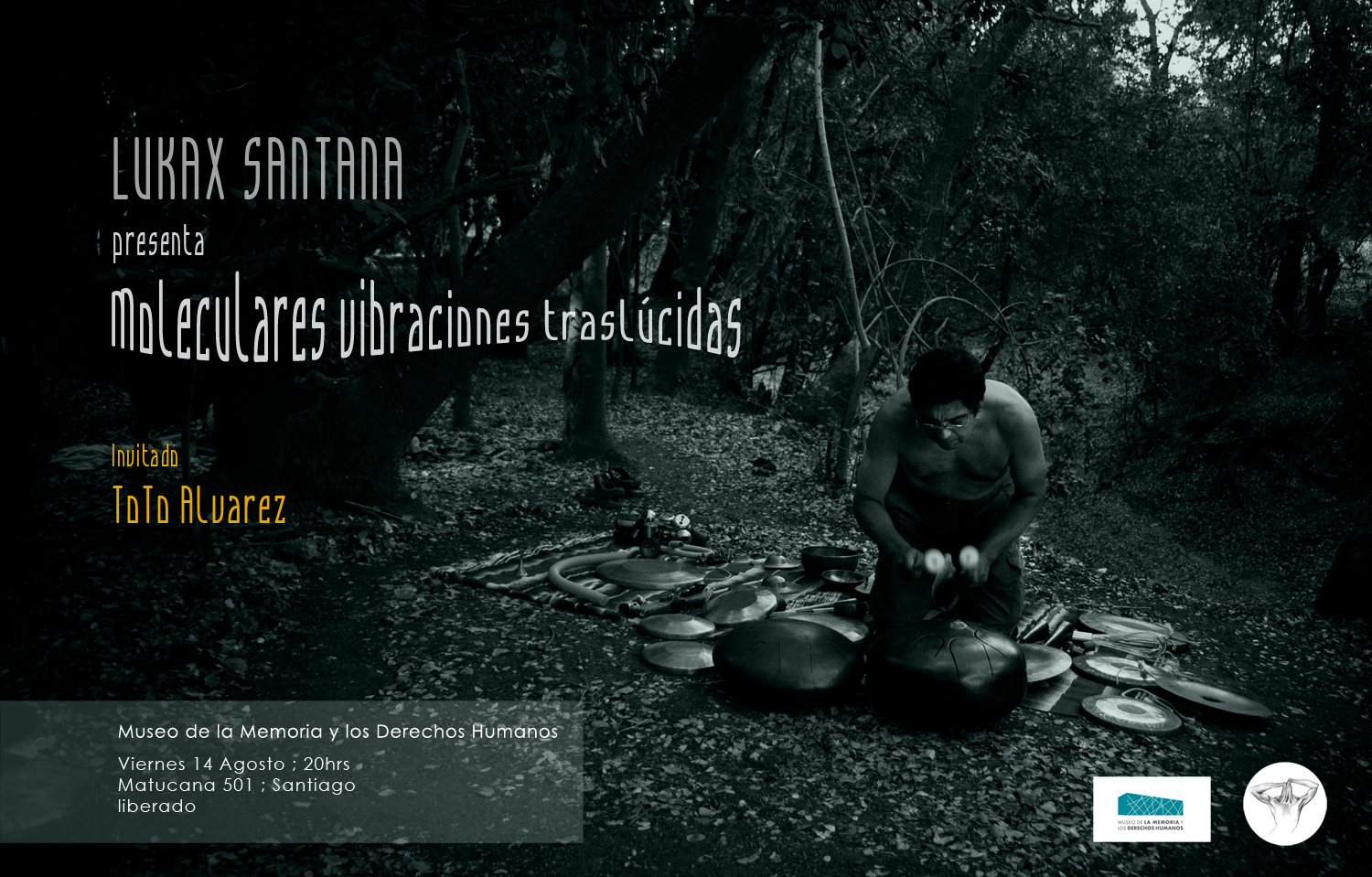 MOLECULARES VIBRACIONES TRASLÚCIDAS 14 AGOSTO / MUSEO DE LA MEMORIA Y LOS DERECHOS HUMANOS 20 HRS / LIBERADO 1 – PIQUETE DE LONDRES ( GRABACIONES DE CAMPO Y BOMBO ) 2 – IMPRO LUKAX + TOTO 3 – MOLECULARES VIBRACIONES TRASLÚCIDAS LUKAX SANTANA / TOTO ALVAREZ OBRA PARA CRISTALES, BOTELLAS Y ELECTRÓNICA , DE LUKAX SANTANA